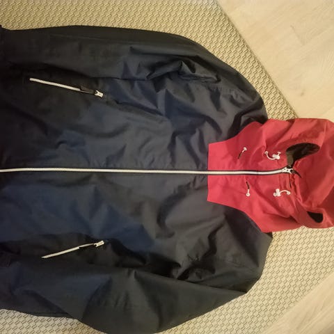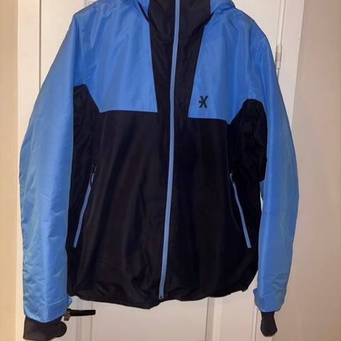 Myydään uusi ja käyttämätön tummansininen miesten hupullinen talvitakki/laskettelutakki. Hupun saa irti.
