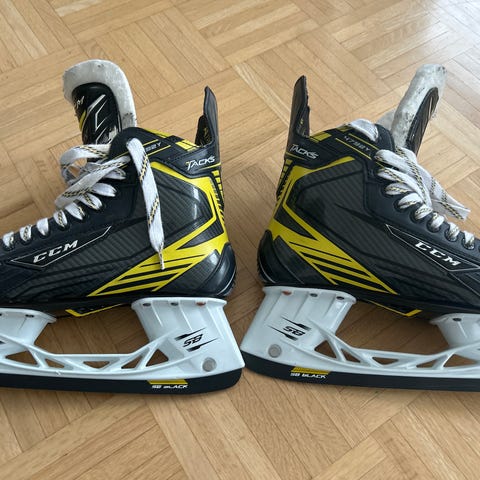 Yhdellä nuorella, yhden talven käytössä olleet CCM:n super tacks 9350 hokkarit. Muutama viiru löytyy mutta muuten kuin uudet. Saa sovittaa ennen ostopäätöstä.