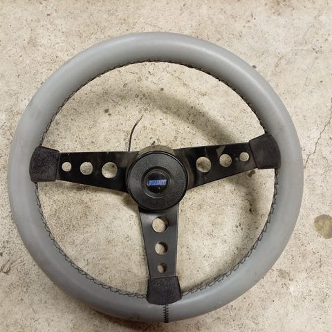 Vanha ralliratti. Paljon käytetty ja se myös näkyy. Silti tuolla edelleen renkaita kääntää. Merkki todennäköisesti Astrali. Jako 6x101,6mm. Eli 4 tuumaa. Brittiharrastajat huom! Halkaisija 335mm