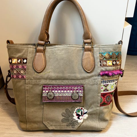 Desigual, Learn Nahkaa ja kangasta oleva, upea kassi vetoketjullisia taskuja on monta. Vuorissa puhelin tasku