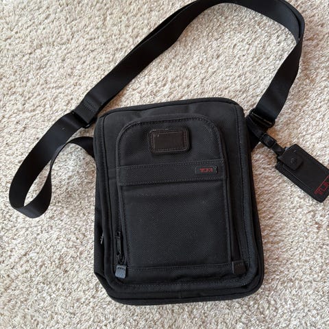 Tumin laadukas crossbody laukku, sopii hyvin läppärille ja muille työtavaroille. erillinen irroitettava tietokonepehmuketasku. etuläppänkiinnittyy elegantisti magneetilla. Tumin tapaan kaikenkaikkiaan tehokkaat ja monipuoliset taskut. Varsin tilava esim käsimatkatavaraksi hyvä. Asettuu myös lentolaukun päälle kahvaan tukevasti joten tosi hyvä matkustamiseen.