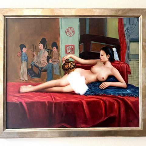 Kiinalaisen taiteilijan vesivärimaalaus paperille, 1900-luku. Koko 155 × 50 cm.