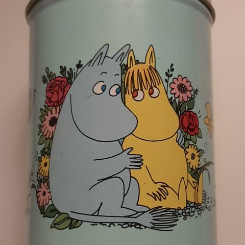 Myydään uusi Tyhjä, käyttämätön Muumi-peltipurkki.