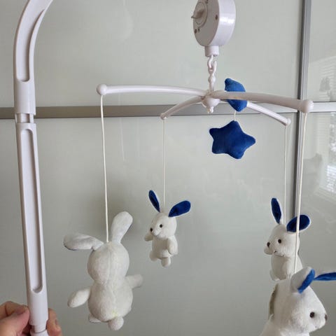 Miffy Pupu -somisteinen musiikkimobile vauvalle esim. pinnasängyn reunalle. Kaksi pupua ja kaksi palloa, joissa toisessa on peili alapuolella. Rauhallinen melodia. Hempeät sävyt. Tullut meille käytettynä. Meillä oli lähinnä katseluleluna, muutamia kertoja musiikkia soitettu. Myydään nyt iloksi seuraavalle pienokaiselle.