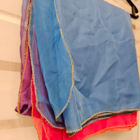 Pikku huivi itämaiseen tanssiin. Kolmion pitkän sivun mitta on 113 cm ja lyhyet sivut 65 cm. Hinta 5 €. Tämä Kannuksessa mutta voin lähettää. Mmm. Kannattaa tarkastaa myös muut ilmoitukseni.