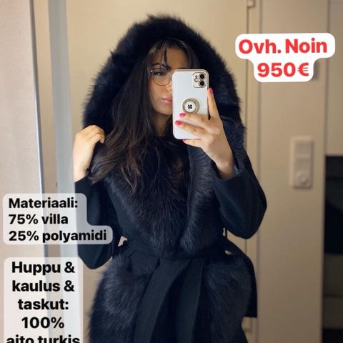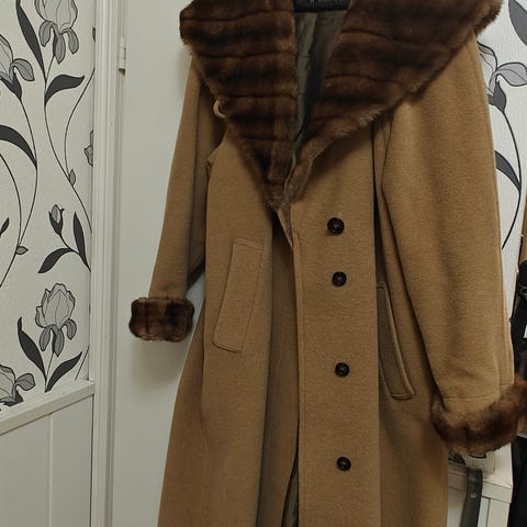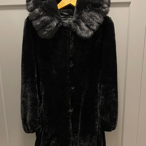Lämmin ja tyylikäs villa/mohair/tekoturkis sekoite takki. Kultaiset napit ja sivuissa taskut. IT koko 40, eli XS/S. Täydellisessä kunnossa.