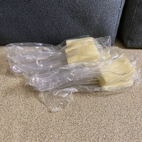Tupperwaren kirkkaat salaattiottimet. Jääneet käyttämättömäksi kaappiin.
