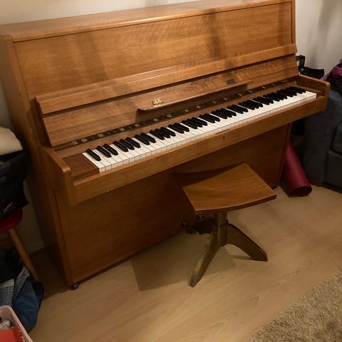 Annetaan Hellas-piano, sarjanumeroiden perusteella vm. 1970. Renner-koneistolla. Ei mikään lastulevylaatikko.