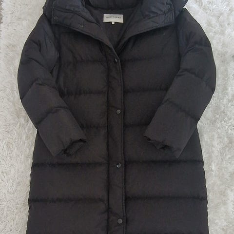 Marimekon paljon pidetty musta untuvatakki koko XS. Tämä on väljä malli joten menee varmasti myös koolle M ellei jopa L. Paljon rakastettu joten untuvatäytteessä hieman paikoittaista vajumaa. Edelleen kuitenkin täysin käyttökuntoinen. Viimeisessä kuvassa näkyy kainaloiden kulumaa, on kuitenkin hyvin huomaamatonta. Nouto Espoon Ingaksenmäestä tai postitus kuluja vastaan.