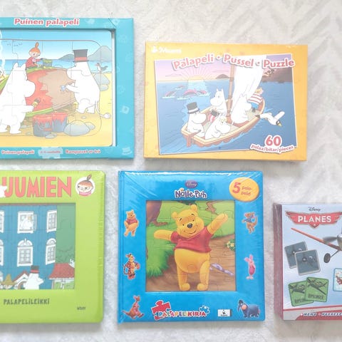 Kaksi samanlaista Muumi-puupalapeliä,molemmissa palat uudenveroisia,toisen pelin "rasian" kantokahvasta pala puuttuu.Hinta:6e/kpl tai molemmat yht.10e.