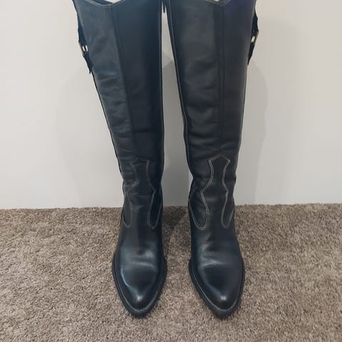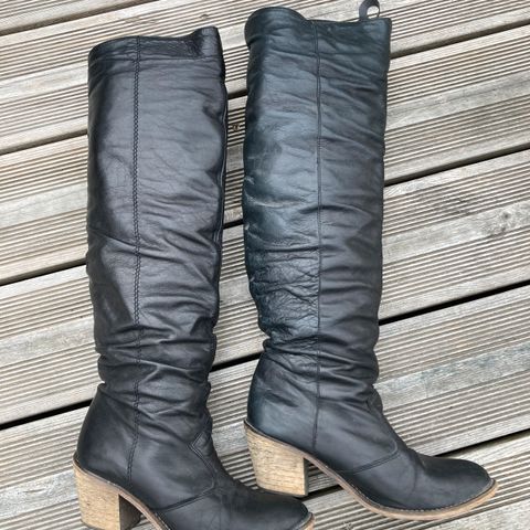 Sisäpuolella lappu Made in Finland. Korko n 6cm. Vetoketjut toimii hyvin. Koroissa jonkun verran käytön jälkiä. Muutoin siistit.