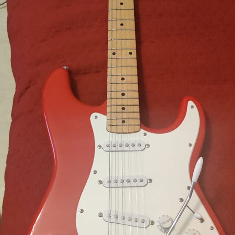 6 kielinen sähkökitara. Reverse headstock. Erittäin matala action mikäli niin haluaa. Kaulamikkinä hotrails tyylinen mikki, keskellä mini humbucker, tallassa paf.
