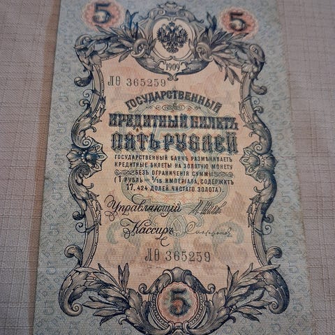 Venäjä 5 ruplan seteli 1909