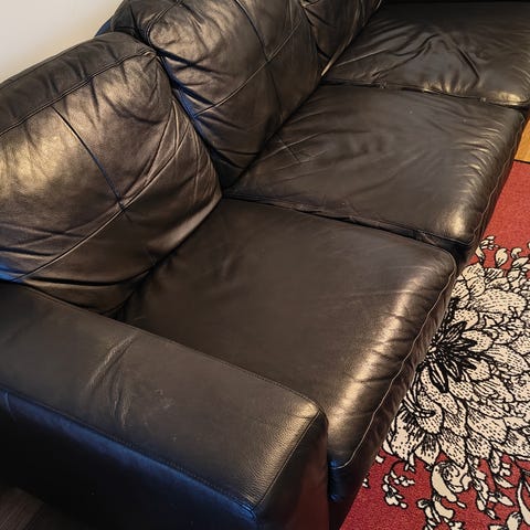 Punainen, kestävällä plyyshillä oleva helppohoitoinen käytetty 3-istuttava sohva punaisella verhoilulla
