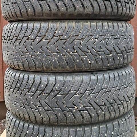 Kuvanmukaiset käyttämättömät nastarenkaat vanhaa varastoa DOT 2920.