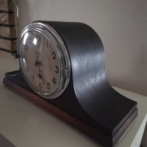 Kaunis takkakello Jantar, Neuvostoliitto ,materiaali puu/muovi, pientä pinta kulumaa, toimii patterilla.