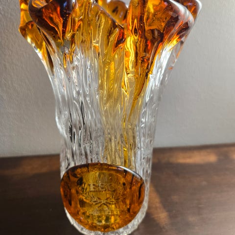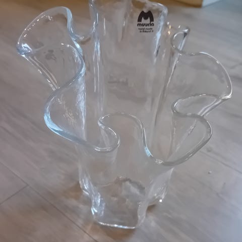 Muurla Eva maljakko. Desing Tauno Wirkkala 70-luku. Hieman likaa alaosassa mitä en ole yrittänyt poistaa. Korkeus 23cm. Halkaisija ylhäältä 17,5cm x 17cm. Nouto Saimaanharjulta 10km Lappeenrannasta. Voin postittaa mutta postikulut sinulle