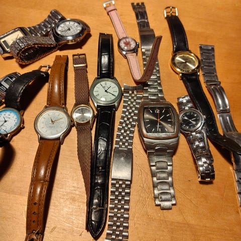 Kuvien mukaisia rannekelloja. Tarkemmat kuvaukset saa, kun katsoo kaikki ilmoitukseni klikkaamalla nimeäni👍 lisää tarkentavia kuvia ja lisätietoa pyydettäessä. Kaikki kellot ovat olleet käytössä ja tällä hetkellä mikään ei käy, joten vaatii pariston vaihdon.