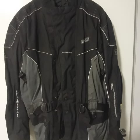 Lähes uusi ajotakki jossa ovat suojat, noin 155-165 pitkälle. Mittaukset kuvassa.
