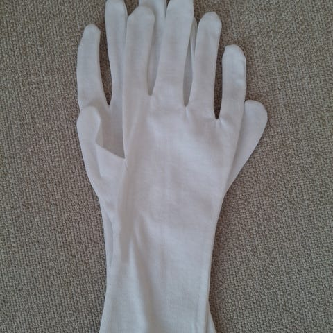 Kunto: kohtalainen. Toisen hanskan Väri muuttunut auringossa ja pinta kulunut kämmenen puolella jonkinverran, rannenauhat löystyneet. Hanskat kuitenkin ehjät ja tällätavoin ominaisuudet tallella.