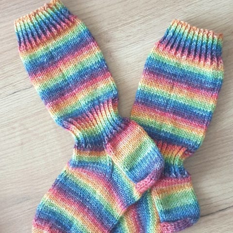 Kolmet villasukat joiden jalan mitta n.19cm, vaaleanpunaisissa hiukan alle. Menee n.34-35 kokoiselle jalalle. Käsintehtyjä villalangasta. Valkoiset ehtivät kerran jalkaan. Vaaleanpunaiset ja siniset sukat vähän käytettyjä, tosi siistejä seuraavalle. Nouto tai ostajalle postit.