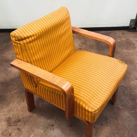 Jouset kunnossa. Alkuperäinen punainen kangas ja käsinojat maalattu. Ollut lähinnä koristekäytössä, joten maalattu kangas on edelleen karkea. Käytössä kankaan pitäisi pehmentyä!