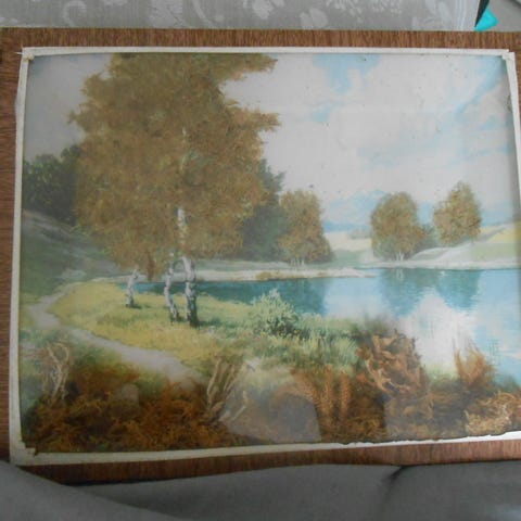 Koriste taulu jossa sisällä aidot kivi ja kasvikset. Koko 25 x 20 x 3.