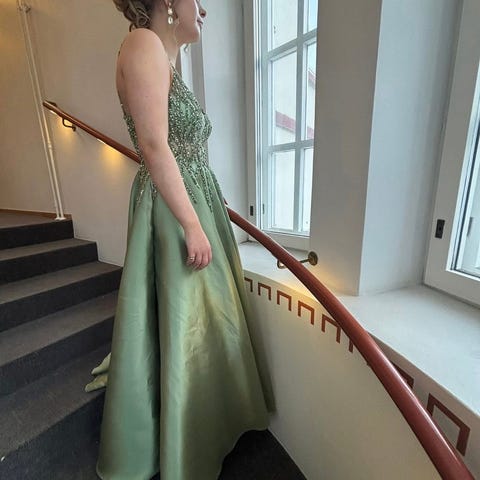 170cm pitkälle sopiva juhlamekko S eli 36 kokoa käyttävälle.