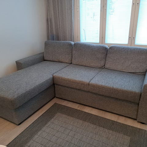 Todella vähäiselle käytölle jäänyt sohva n. puolivuotta vanha, ei tahroja, repeämiä yms. Sohva kuin uusi. Sohva on myös levitettävä!