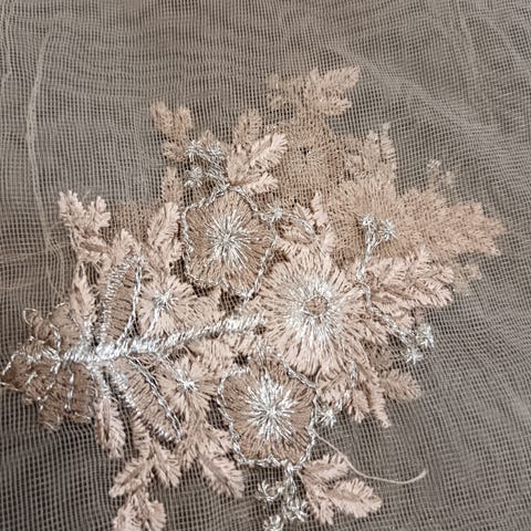 Todella kaunis valkoinen pitsi kangas. Kankaan päälle kiiltävä hopea kirjailua. Kankaan pituus 2 ja puoli metriä ja leveys on 140 cm. Hinta yhteensä 15 euroa Nouto Linnanmaa tai postitus.