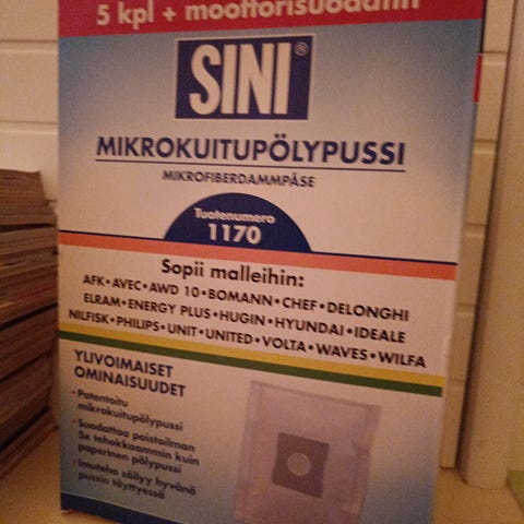 4kpl pölypusseja ja 1kpl mikrosuodatin