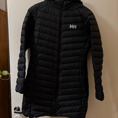 Käyttämättömäksi jäänyt hupullinen Helly Hansen untuvatakki / toppatakki