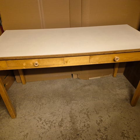 Hyväkuntoinen täyskoivua oleva vanha työpöytä. Pöytäpinta uusittu ja lakattu(väri ruskea pyökki), kaapistot alkuperäisellä lakkapinnalla. Kaapit irrotettavissa, koko L160xsyv70xkork70. Stockmanin vanhassa puuverstaassa ollut. Tukevaa tekoa, pöytälevystä voi tehdä vaikka ruokapöydän. Vain nouto! Kuljetus edestakaisin max 100km, tai soviteltavissa. Tarjoa!