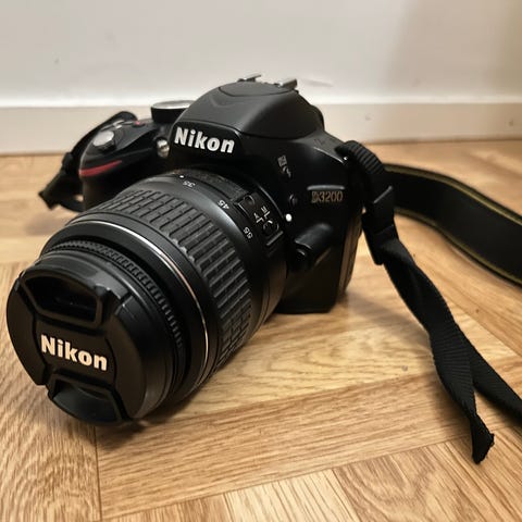 Esimerkiksi kuvien mukainen Nikon D3100 kamera 80€.