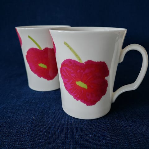 Hyväkuntoisia Arabian Illusia mukeja, yksi sininen ja kaksi punaista, toisessa punaisessa vähän tummentmaa sisäpohjassa. Hinta 20,-/kpl.