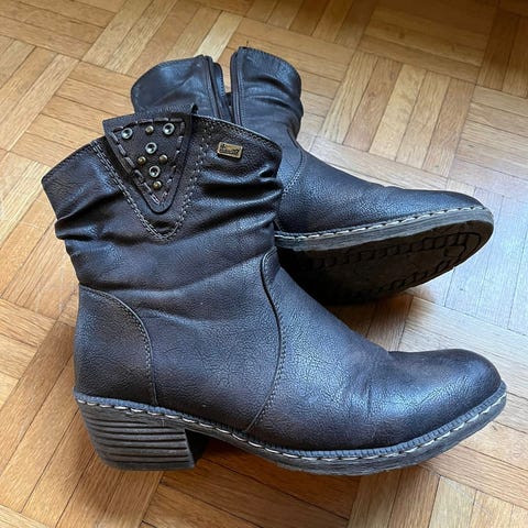 Naisten hyväkuntoiset Rieker -merkkiset nilkkurit vetoketjukiinnityksellä, koko 38.