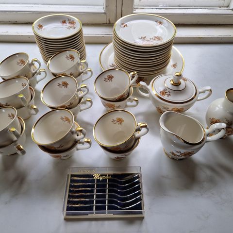 Nimi: Arabia Myrna sokerikko, kermakko, tarjoilulautanen ja 4 pullalautasta