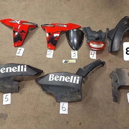 Löytyy esim: vanteet, moottori, katteita, jarruosia, sähköjä, yms yms