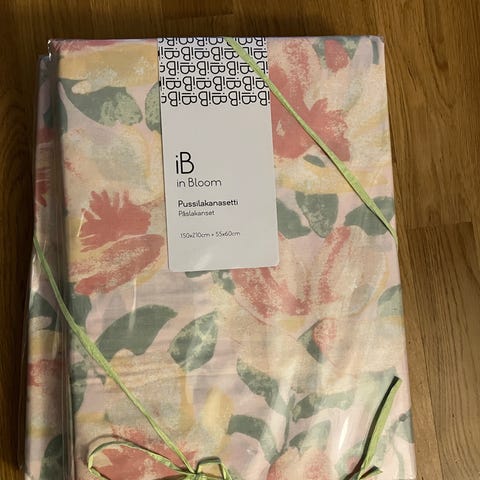 Perus koko eli 150 *210 cm pussilakanat ja 50*60 cm tyynyliinat