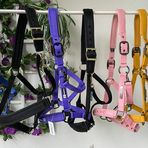 Uudet,nahkaiset näyttelyriimut. (No miksei näitä toki muulloinkin voi pitää.) Koko foal eli varsa.