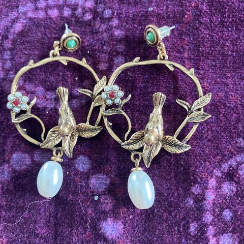 Keinonahkaiset isot ja kevyet korvikset, joissa on Paradiisilintu/kolibri.