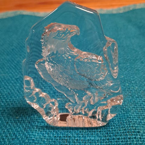 Kotka lasitaideos tehty vahvasta lasista