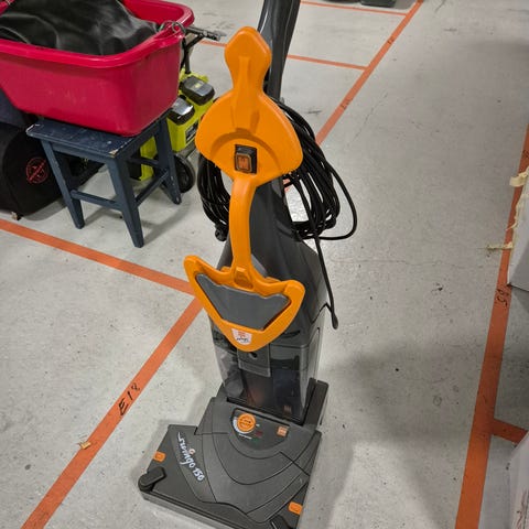Suoraan käytöstä harjallinen siivouskone, ollut hallin lattian siivouksessa, sähköjohdon joutuu uusimaan