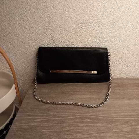 20×12cm. Nahkainen, vetoketjullinen laukku.