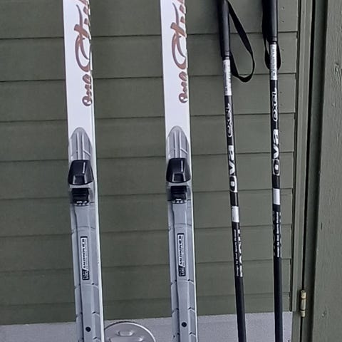 Sukset ja sauvat. Sukset 177cm SNS siteillä. Mukaan myös 38 Jalas SNS- monot
