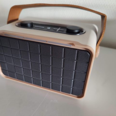 Hauska retro Bluetooth kaiutin. 2*3W teho, 4ohm, 600 mAh sisäinen akku, ladattava. FM radio, USB ja TF-kortinlukija. Tukee BT 5.0+ langatonta musiikin toistoa ja puheluita. Valot, aidot käynnistys sekä sammutus moottoriäänet.