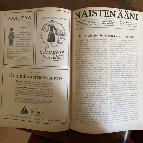 Suomen naisopettajain liiton julkaisu. Lehdissä on mm. askartelu ja käsityöohjeita. Yhden lehden takaa reunasta pieni pala revennyt, muutoin vintage lehdet ovat hyväkuntoisia ja siistejä.
