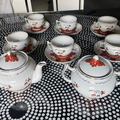 Qween Anne tee yms. lasit pidikkeineen. Englantilaisia silved plated kauniita astioita.