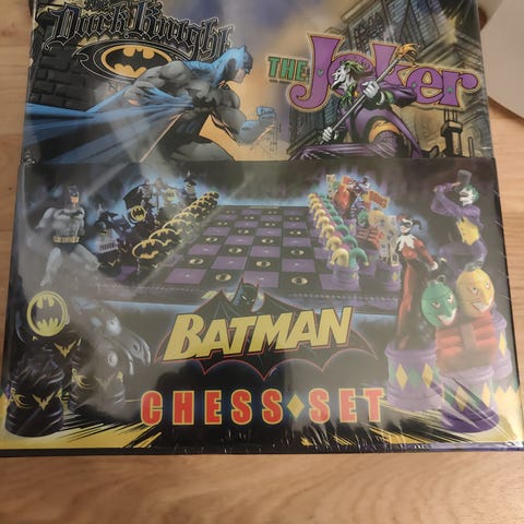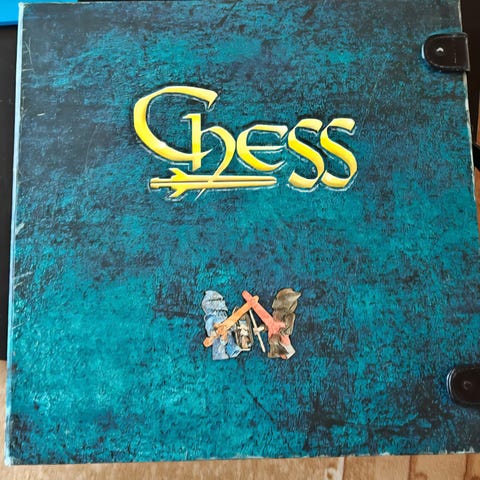 Pari kertaa pelattu ja sitten aarteena säilytetty shakki. Muoviset figuurit, pahvinen lauta, alkuperäinen pakkaus muoveineen. Nappulat väriltään "pronssi" ja "hopea".