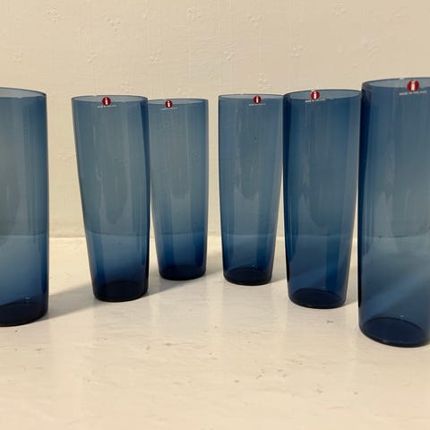 Iittala kauniit juomalasit 5 kpl, kuvan mukaiset. Korkeus 12 sm, halkaisija 6,3 sm.